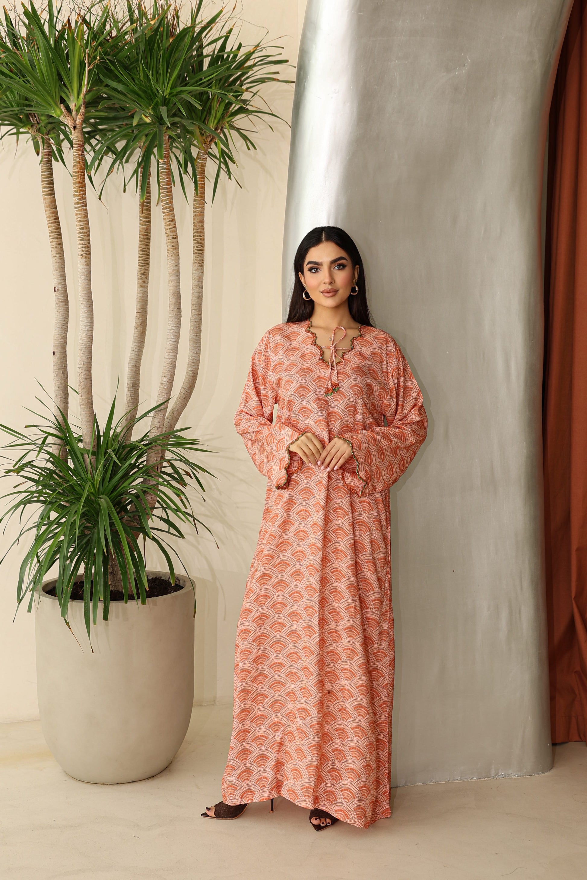 جلابية قطن اصلي فيها شغل كروشيه ناعم
